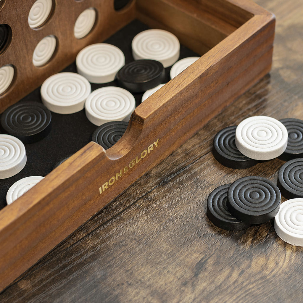 Dieses Spiel ist mehr als nur ein Brettspiel, es ist auch ein vollwertiges Dekorationsstück. Denn seine schöne Holzkonstruktion wird deine warme und elegante Einrichtung hervorheben. Um das schöne Spielbrett aus Holz noch besser zur Geltung zu bringen, kannst du mit den weißen Spielsteinen einen schönen Brief oder eine andere Form bilden. Wenn du keine kreative Ader hast, kannst du dich beruhigen, denn es gibt ein kleines Baumwollsäckchen, in dem die 42 Spielsteine des Holzspiels aufbewahrt werden können.